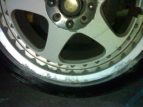 แล้วที่อาการไม่ดีก็คือ หลังซ้ายที่ไปฟาดกับฟุตบาท ล้อเสียศูนย์เลยครับ