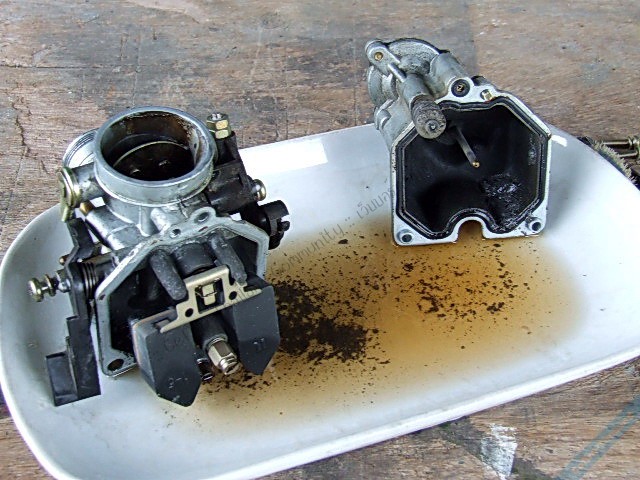 เอาไขควงควักออกมาให้เห็นชัดๆ สงสัยมากว่ามันมาจากไหน รถคันนี้ผมซื้อมือสองมาตอนที่วิ่งไปแค่ 300 โลครับ หลังจากนั้นสี่ปีไม่เคยล้างคาบูเลย