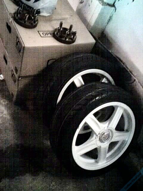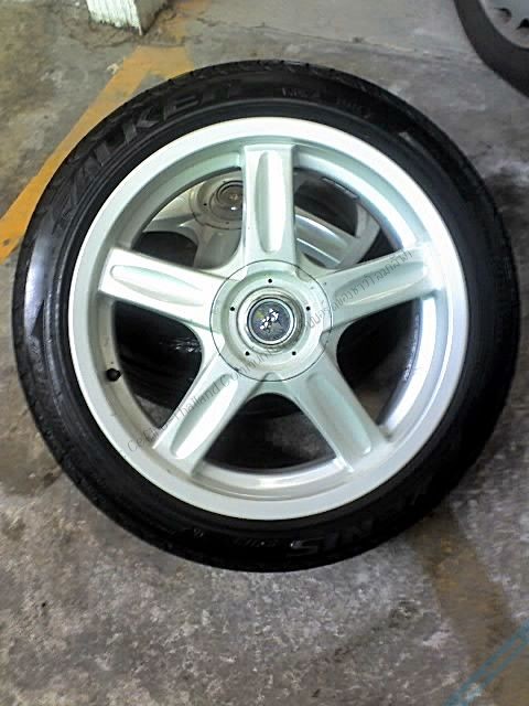 กว้าง7" ยางFlaken 215/45/17 ปี05 ดอกเหลือเยอะ ไม่กินข้าง ไม่บวม สภาพดี