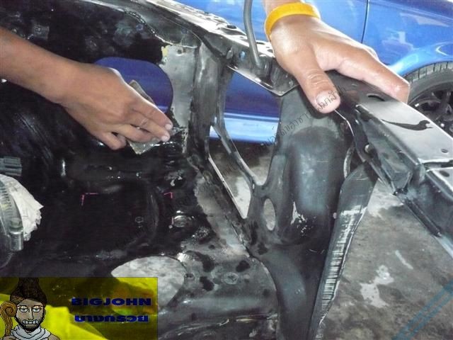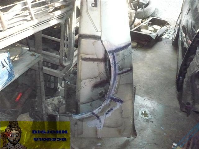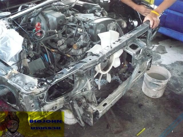 -ถอดโครงกันชน บังโคลนหน้าออก เพื่อเชื่อมคานหม้อน้ำให้ติดกับบอดี้