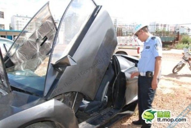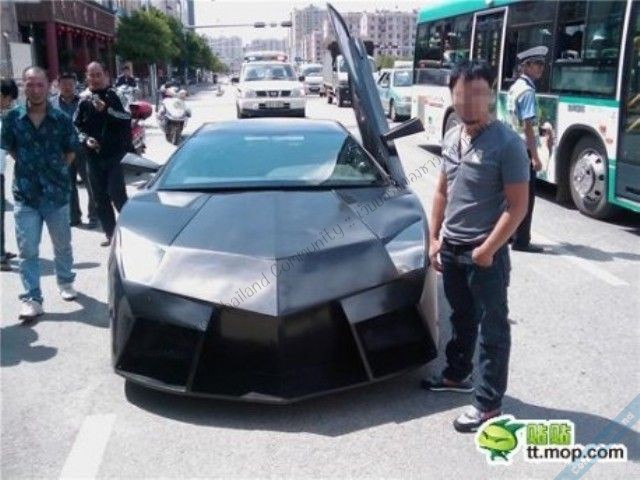 A Lamborghini RB25 engine powers the ride and is probably the only original Lam gear on the car. Asan, the enthusiast responsible for this creation, pitched in 90,000 Yuan (which is something in the neighborhood of USD 13,800) to have this fantastic imitation of the $2.3 million car made.