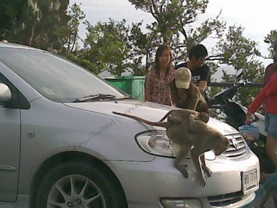 ขับผ่านคันอื่นเค้าก็ชี้กันว่าลิงอยู่บนหลังคา