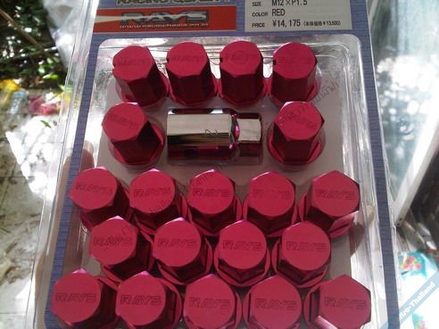 มีทั้งเกลียว 1.5 และ 1.25 20 ตัว มาพร้อมบล๊อค และน๊อตกันขโมย 7 เหลี่ยม วัสดุเป็นอลูมิเนียม ชุบ อะโนไดซ์