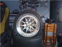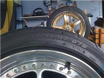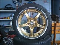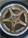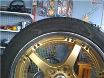 ชุดที่2 Volk challang ขอบ18 5รู114 กว้าง 8 นิ้ว ก้านสีทองขอบปัดเงา (งาน P&P)ยาง yokohama คู่หน้า decibel 225/42/18 ปี07 คู่หลัง A.Drive 235/40/18 ปี06 สภาพดี ขาย 18000