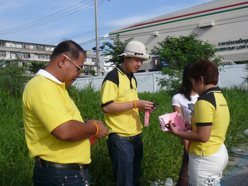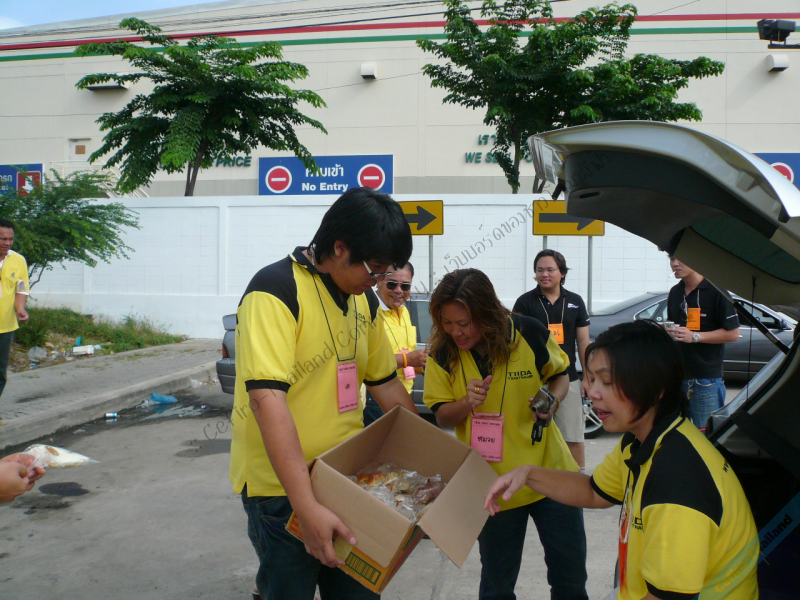 เขียนป้ายคล้องคอ แจกน้ำ แจกขนมปัง เป็นที่ชื่นมื่น