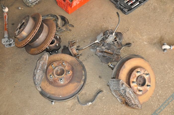 ชุดเบรคหน้า+หลัง Skyline R33GTS เก่าญี่ปุ่นเต็มชุดมีคอม้าดุมหลังครบ แบบมีคอม้าดุมหลังหมดแล้วครับ