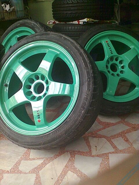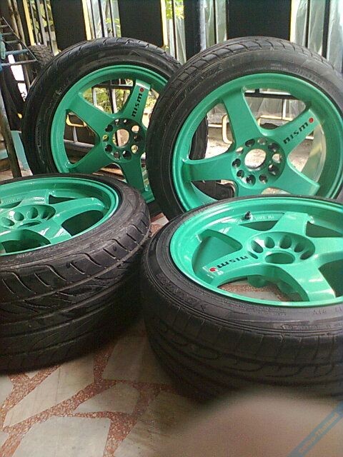 8.ล้อnismo gt4 fordgeขอบ17หน้ากว้าง8.5ออฟ30หลัง9.5ออฟ38(ล้อทำสีจากยุ่นเขียว)ติดยาง