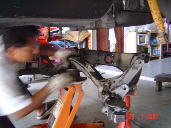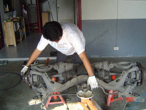 ในภาพ....ถอดแพท้ายเก่าออกมาจัดการ เปลี่ยนบู๊ชยางเดิม