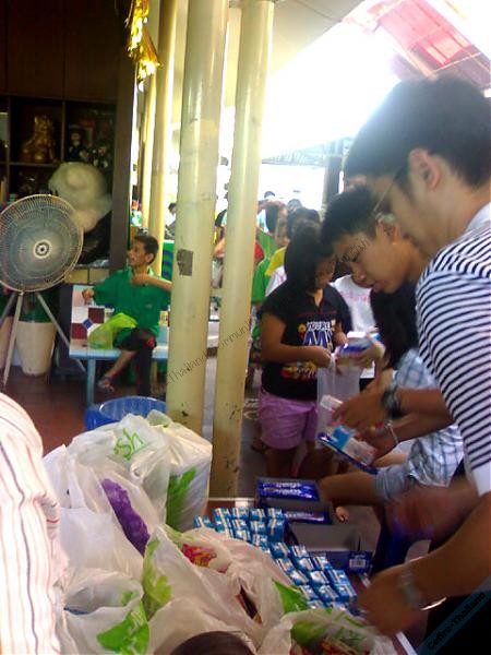 ตอนที่นับเงินอยู่ มีครอบครัวนึง วันเกิดลูกสาว เค้าก็พาครอบครัวมาแจกนม, ขนมให้เด็กๆ ในบ้านครับ น่ารักดีครับ