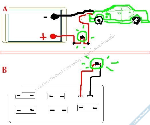 แต่ถ้า ต่อ หลอดไฟ เอาไว้ ระหว่าง สายแบตขั้ว ลบ