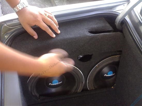 step แรกที่เคยทำ ยัดถงแก๊สไว้หลังในห้องโดยสารถอดเบาะหลังออกตีเป็นตู้ลำโพงยึดทั้งpower+coss