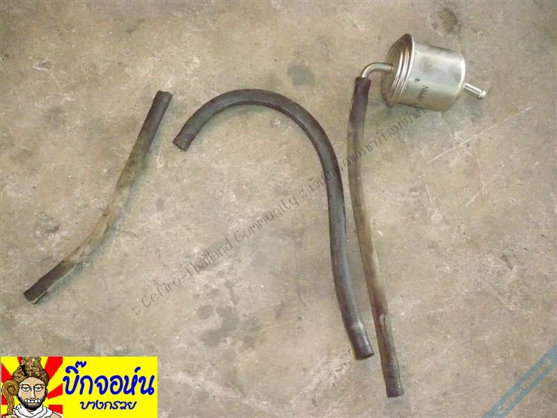 -สไลค์รถเข้ามาเพราะน้ำมันรั่วบริเวณท้ายรถ ยกขึ้นฮ็อคเช็คแล้วเป็นที่ท่อน้ำมันเบนซินหมดอายุ จับเปลี่ยนใหม่ทั้ง2เส้น และย้ายกรองเบนซินไปอยู่หน้ารถ