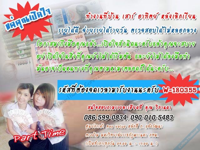 สำหรับผู้ที่ต้องการ หางานพิเศษทำที่บ้าน PART TIME เสาร์ อาทิตย์ รายได้เสริม พาร์ทไทม์ หลังเลิกเรียน นักศึกษาระหว่างเรียน ทำหลังเลิกเรียน ทำเป็นงานเสริม ช่วงเย็น สามารถรับงานทำที่บ้านได้ กทม l ปทุมธานี l นนทบุรี l สมุทราปราการ l กรุงเทพ l ปริมณฑล l งานคีย์ข้อมูล พิมพ์งาน ส่ง E-mail ทำงานวันละ 1-2 ชม./วัน รายได้ดี รายเงินทุกวัน