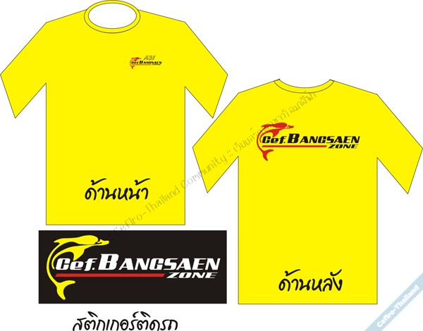 สรุปแบบออกมาแล้วครับ เป็นเสื้อยืด คอกลม สีเหลือง ใส่ สบาย ๆ ในวันสบาย สกรีน 2 สีหน้า/หลังตามแบบ ราคาทุนเลย 199 เพื่อความพร้อมเพรียง ส่วน แบบสติกเกอร์ ติดรถ สีสติกเกอร์เป็นตามแบบ