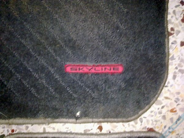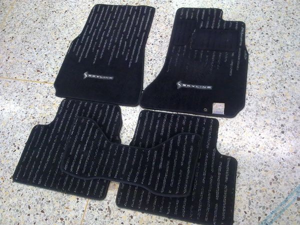 - พรม Sky R33 ครบชุด 5 ชิ้น เพลทเหล็ก ด้านหน้าสภาพสวยมาก ไม่มีฉีกขาด ยางด้านหลังมีแตกด้านคนขับ นิดนึง ไม่เยอะ นอกนั้นไม่มีแตก สวยๆ