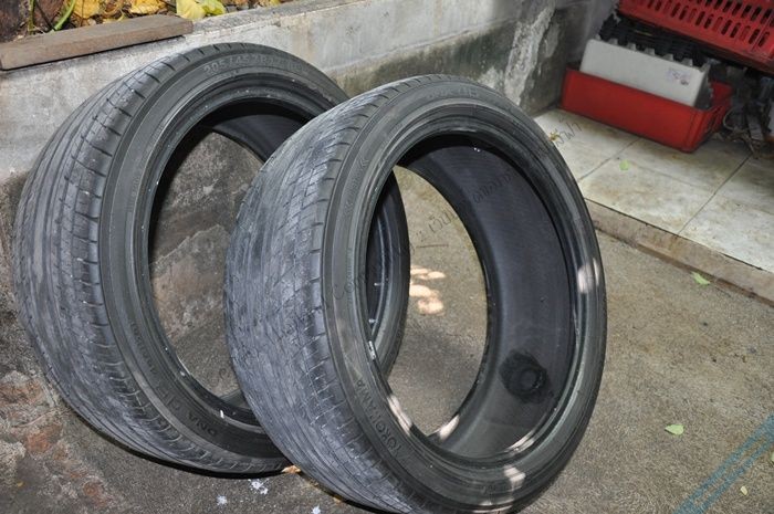 ยางโยโก 205/45/17 เส้นหนึ่งมีรอยปะ ขายคู่ละ