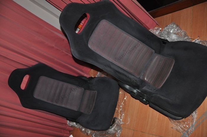 เบาะคู่หน้า SKYLINE R33GTR คอแดง V-SPEC พร้อมรางใส่ A31 ได้เลยไม่ต้องแปลงยกใส่พอดี เบาะคู่นี้มีไม่มากค่อนข้างหายาก ตัวคอแดง สภาพ..พรรณาได้ว่า..