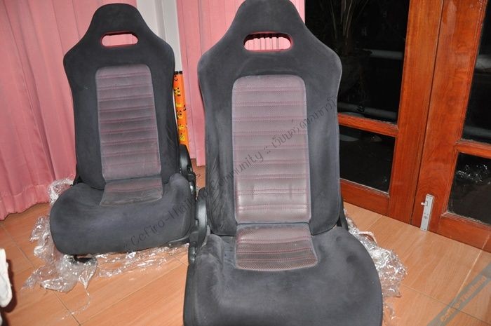 เบาะคนขับฝั่งขวามีฟองน้ำยุบตัวบ้าง ด้านพนักผิงผ้ายับเป็นริ้วบ้างเล็กน้อย (ร้านเบาะเสริมฟองน้ำได้ไม่มีปัญหา) ถ้าไม่ซีเรียสมากก็ใส่แบบนี้เลย