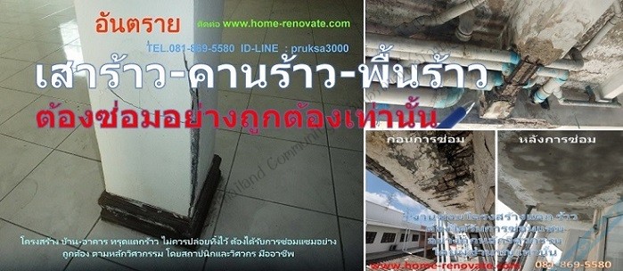 รับซ่อม เสา คาน พื้น แตกร้าว รีโนเวท ปรับปรุงบ้าน อาคาร ต้องทำให้ดี อย่าต้องให้เสียของอีก เสียแล้วเสียอีกเป็นบทเรียนราคาแพง เข้าตำรา(เสียน้อย เสียยาก เสียมากเสียง่าย)