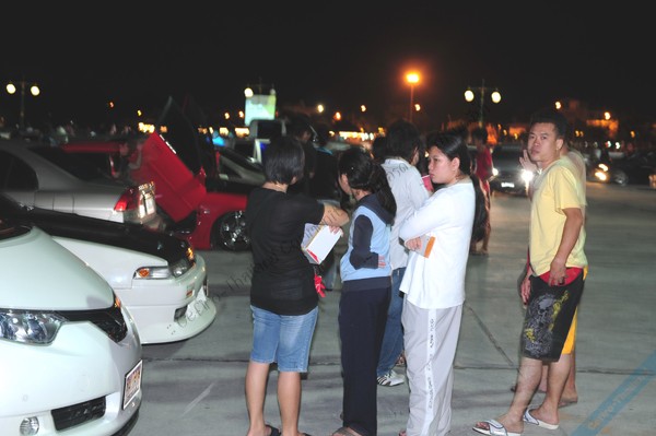 มาดูบรรยากาศ วันที่เสาร์ผ่านมา หลังจากฝนหยุดตกราว ๆ 2 ทุ่มผมก็ออกมาแหลมแท่น..รู้สึก บางแสนจะคึกคักมากเริ่มจากหาดวอนนภา คนค่อนข้างแน่นจนถึงแหลมแท่น 2 ข้างทางจะมีรั้วกั้นเกือบจะสมบูรณ์ เพื่อเป็นสนามแข่ง พอถึง แหลมแท่น ตายล่ะ..รถมาจากไหนกันมากมายเหลือเกิน วีออสมาเพียบ มองหา เซฟเรา ไม่มีซักคัน เลยตัดสินใจขับเข้าไป เจอ เจ้าป้องถึงเป็นคนแรก ก็อาศัยเบียดๆ กันไปก่อน จนเริ่มมีทะยอยมาเรื่อยๆ แต่ไม่มีที่จอด ผู้คนก็มาเดินชมกันเยอะทีเดียวจนกระทั่งฝนรอบ 2 และรอบ3 เขาหนีกันหมด เลยได้ที่จอด จนฝนตกอีก รอบ4 คราวนี้ ได้เวลา แล้ว..โว้ย พี่ไปก่อนละ จะเที่ยงคืน แว้ววววว... บ้าย..บาย น้องๆ ทุกคน..เจอกันใหม่เสาร์หน้า..