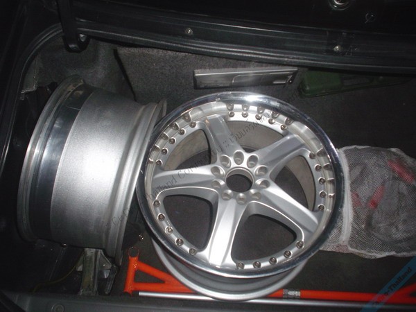 เตรียมรถวิ่งควอเตอร์ไมล์ดีก่า..เริ่มที่ยืมล้อขอบ17 กว้าง 9 นิ้วจากตาเฒ่า มิวสิคพลัส มาเปลี่ยนล้อหลัง 1คู่ รัดด้วยยาง255/40/17 จากร้านติ๊กซีรี่