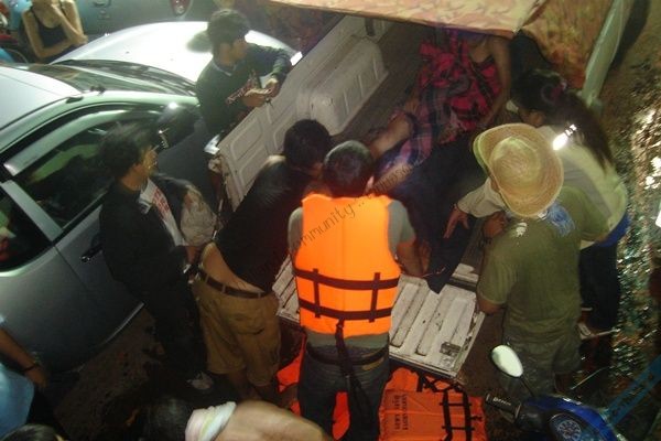 ทุกคนก็ลุกขึ้นร้องกันเสียงดังแล้วคนที่คุมเรือก็กระโดดลงไปช่วยแล้วก็มีคนร้องขึ้นมาอีกว่าผู้หญิงตกเรืออีกคนแต่มีผู้ชายช่วยดึงขึ้นมาได้ไม่เป็นไร...เรา...น้องตู้...น้องนก
